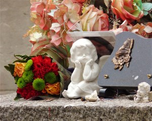 And these are of the gravesite of musician Jim Morrison of The Doors, who was found dead in a hotel room not too far from the cemetery. This too has been fenced off because of overzealous fans.