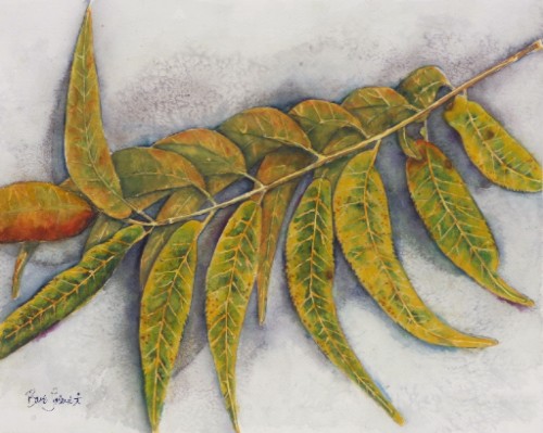 Below are leaves I saw on the ground while wondering thru our local botanical garden. I loved them so much that they then became a painting...