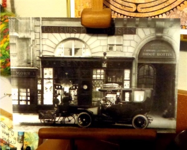 This postcard shows a picture of the shop from the turn of the 20th century. It sits on a shelf in my studio on a miniature wooden easel that I bought while shopping there.