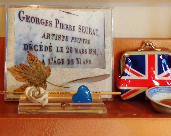 - A photo of the inscription on artist George Seurat's tombstone at Pere Lachaise cemetery in Paris. This was a pilgrimage of sorts for me, as Seurat is one of my favorite artists. I was introduced to his work while taking my first art course in college. Seeing one of his paintings in person at the university for the first time took my breath away. The concept of using different colored dots to create a painting just blew my mind!